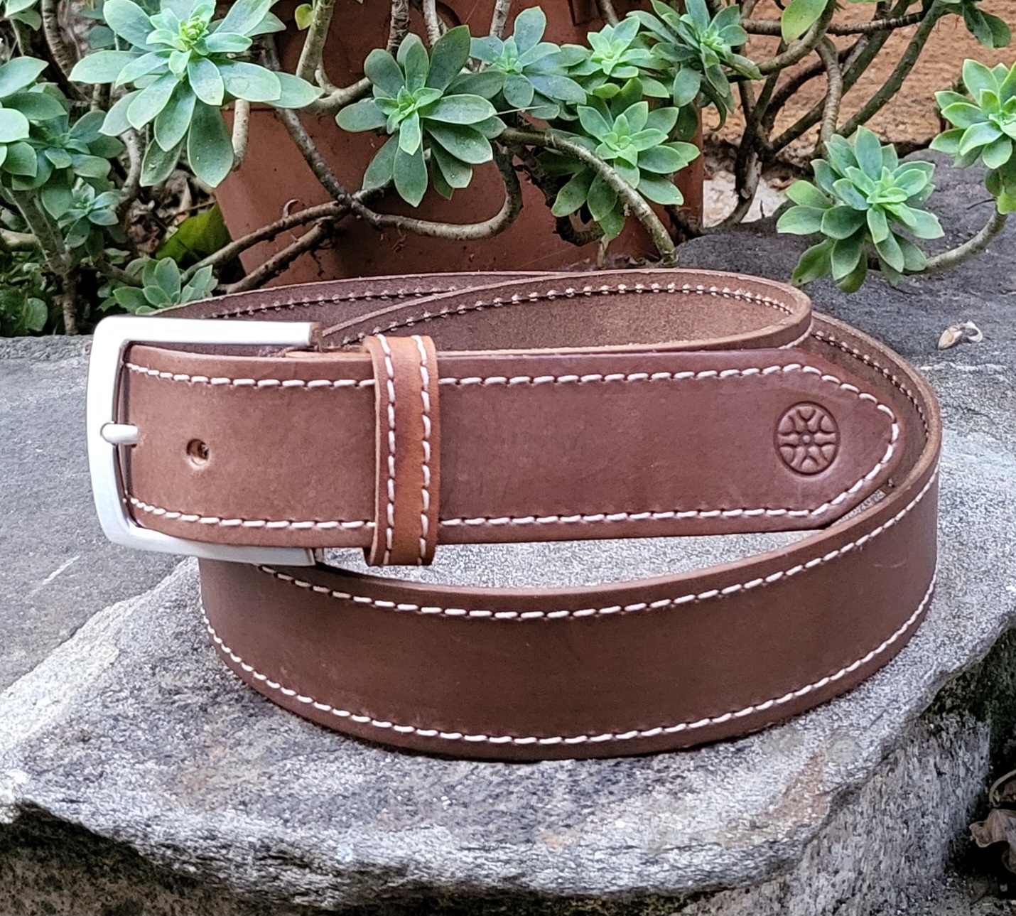 Un accessoire original, solide et élégant, conçu pour vous accompagner pendant de longues années. Chaque ceinture est fabriquée à partir de cuir de vache de 3,5 mm d'épaisseur, teinte et finie à la main avec une grande attention aux détails.